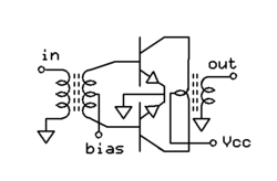 ![]() Frequency doubler A push-push frequency doubler. The output is tuned to two times the input frequency. |