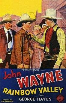 Rainbow Valley is a 1935 American Western film released by Monogram Pictures, written by Lindsley Parsons, directed by Robert N. Bradbury and starring John Wayne.