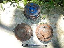 The Rangan 99 is an anti-personnel blast mine introduced in 1999 by the Liberation Tigers of Tamil Eelam (LTTE), during the conflicts in Sri Lanka known as Eelam War III and Eelam War IV.[1] The design was copied from the Pakistani P4 MK1 mine.[2] This type of mine contains C4 explosive, and operates by pressure detection. The LTTE was reported in 2008 to be using a modified type with an electronic anti-handling device.[1] Army de-mining teams were dealing with large numbers of Rangan 99 mines in 2010.[3]