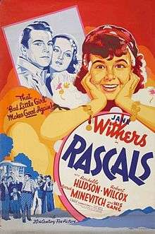 Rascals is a 1938 American comedy film directed by H. Bruce Humberstone and written by Robert Ellis and Helen Logan. The film stars Jane Withers, Rochelle Hudson, Robert Wilcox, Borrah Minevitch, Steffi Duna and Katharine Alexander.[1][2][3] The film was released on May 20, 1938, by 20th Century Fox.