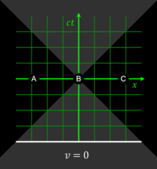 - ↑ Einstein's thought experiment used two light rays starting at both ends of the platform. See: Einstein A. (1917), Relativity: The Special and General Theory, Springer