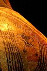 Some researchers consider that the symbols used for representing the feminity are the rhombus for fertility and the triangle as a symbol for fecundity.[7] The cross, symbolizing nature's power of fertility and renewal, was sometimes used to represent masculinity, as well as the phases of the moon.[8]