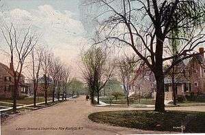 The Garden City Movement arose in England during the 19th century as a reaction to the crowding and pollution of cities as a result of its Industrial Revolution.[3] While the movement had spread to United States by the 1920s, early residential developers had begun experimenting with the 'Garden City' concept way before it gained the title, including Adrian G Iselin, who planned "Residence Park" in 1885. The neighborhood can be viewed as the grandfather to suburban living in the modern American city. Prior to its existence, residential settings were limited to either very rural or very urban design extremes. Lots were fronted by no more than a ditch or a dirt road when not immediately in the urban environment, and when in the city, there was little to no natural space except for public parks.[4] In Residence Park, specific attention to public spaces, natural settings and visual beauty helped distinguish it from most other suburban developments.