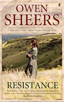 Resistance is an alternative history novel by Welsh poet and author Owen Sheers. The plot centers around the inhabitants of a valley near Abergavenny in Wales in 1944–45, shortly after the failure of Operation Overlord and a successful German counter-invasion of Britain (see Operation Sea Lion). A group of German Wehrmacht soldiers stay there after the wives' husbands leave to serve in the covert British Resistance. The novel follows abandoned farmer's wife, Sarah Lewis and German commanding officer, Albrecht Wolfram as they form an unlikely relationship in spite of their backgrounds and political standings.