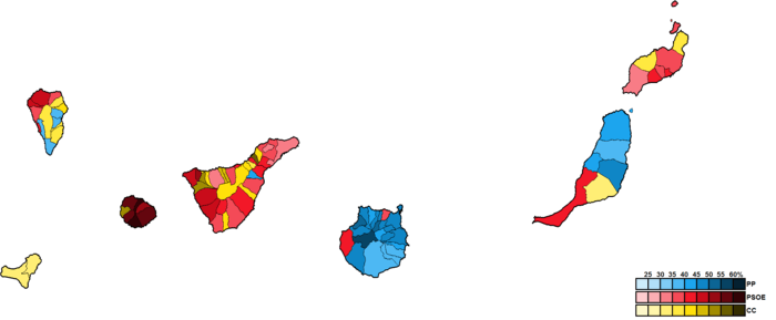 | Canarian Coalition (CC) | 235,221 | 0.91 | –0.16 | 3 | –1 | |