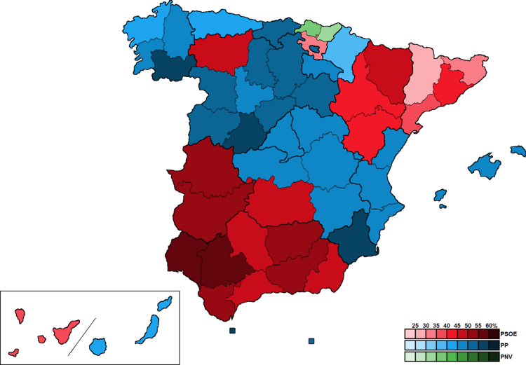| PSOE | 11,026,163 | 42.6% | 164 | |