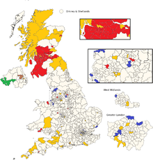 - ↑ "Election 2015: Results". BBC News: Politics. BBC. Retrieved 13 June 2015. Care has to be taken in interpreting the gains and losses shown by the BBC and other media outlets as they usually do not compare with the General Election in 2010.