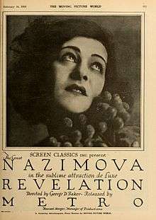 Revelation is a 1918 American silent drama film directed by George D. Baker and starring Alla Nazimova. The film was produced and distributed through Metro Pictures.[1][2]