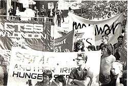 Supporting Irish republicanism was central to the work of the RCP. In 1978 the RCT organised the Smash the Prevention of Terrorism Act Campaign, and held protests outside police stations where suspects were held. The RCT organised a conference of trade unionists opposed to Northern Ireland being part of the United Kingdom in Coventry in 1981, and later that year, held a march to the TUC conference, the Workers March for Irish Freedom. On Saturday 6 February 1982 the Irish Freedom Movement (IFM) was founded at a meeting in Caxton House, Archway - and TUC general secretary Len Murray wrote to the 13 trades councils that sponsored the conference threatening them with disaffiliation if they attended.[18] Mick Hume, who edited the next step recalls that the IFM were accused of complicity in the 1984 bombing of the Conservative Party conference.[19] The IFM published a quarterly bulletin Irish Freedom and organised an annual march on the anniversary of internment. When the voices of Sinn Féin supporters were banned from the British broadcast media, Living Marxism carried a front page interview with its leader Gerry Adams, and the IFM picketed Broadcasting House.
