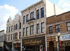 The Richmond Downtown Historic District is an area of primarily commercial buildings and national historic district located at Richmond, Wayne County, Indiana. The district encompasses 47 contributing buildings located along the National Road. It developed between about 1868 and 1960 and includes representative examples of Italianate, Romanesque Revival, Queen Anne, Classical Revival, and Chicago School style architecture. Located in the district is the separately listed Murray Theater. Other notable buildings include the I.O.O.F. Building (1868), Hittle Building (1878), Tivoli Theater (1926), Romey's Building (1920), George H. Knollenberg Building (1877), Kresge Building (c. 1930), Dickinson Building (1880), former U.S. Post Office (1905), and YMCA (1908).[2]