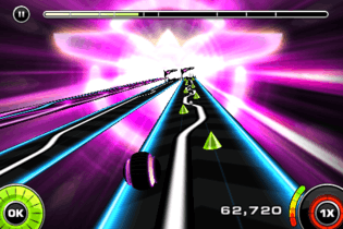 Riddim Ribbon is played by moving the iPod Touch or iPhone to turn the rolling marble and keep it on track.