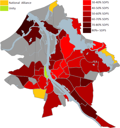 | Most voted party by city district. |