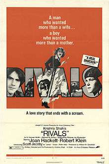 Rivals is a 1972 American drama film written and directed by Krishna Shah. The film stars Joan Hackett, Robert Klein, Scott Jacoby, Jeanne Tanzy Williams, Glen Hayes and Phoebe Dorin. The film was released on August 23, 1972, by AVCO Embassy Pictures.[1][2][3]
