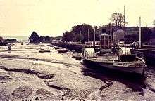 The premier route of the company, this route operated year-round until 1929, thereafter being a summer only service. This route was around 10 miles long, and the journey time was an average of 75 minutes, though journey times of less than an hour were possible before the introduction of a 6 knot speed limit.[1] Calls were made en route at Dittisham Pier, and off Duncannon, where passengers for Stoke Gabriel and Cornworthy were embarked by small rowing boat. Totnes is tidal, and so the ferry could only run at high tide. In its early years the service was a true ferry, connecting Dartmouth with the markets and main line station at Totnes, and carried mail until 1929. As the years went by, it became more of a tourist cruise service[2]