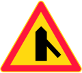 Road narrows on both sides