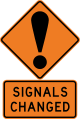 New versions of some pedestrian-related warning signs use a fluorescent green background. New versions of the curve-related warning signs use yellow and black instead of black and white.