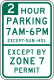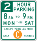 These types of signs allow for parking for either an unlimited or varied amount of time. These types are often used in conjunction with parking meters and parking permits. These signs are specified by the MUTCD to be green on white. Local variations do occur with additional information and slightly different designs.