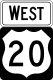 Non-standard US 20 West sign, Main St. after Lexington St., Waltham Center, MA