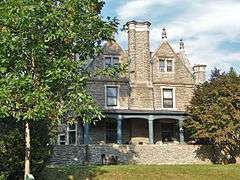 Robert M. Hogue House is a historic mansion located in the Mount Airy neighborhood of Philadelphia, Pennsylvania. It was built in 1896, and is a 2 1/2-story, rectangular stone dwelling in the Jacobean revival-style. It features two-story projecting bays with leaded glass windows, soaring cross gables and dormers, and pointed arch openings. Also on the property is a contributing stable / carriage house and a free standing stone fireplace. It housed the Philadelphia School of Criminology from the late-1940s to 1963, then housed Combs School of Music until 1983.[2]