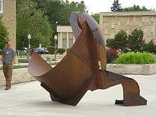 Willms works in the Modernist assembled sculpture tradition begun by Julio González and Pablo Picasso, and continued by David Smith, Anthony Caro, and Willms' mentor, Peter Hide, using solid and sheet steel forms to create heavy, convoluted abstract sculptures. Art critic Piri Halasz has written, in reference to international contemporary sculpture, "As far as that goes, New York also has no equal to Hide, nor to such up-and-comers as Willms...".[2] Robert Willms himself has stated, "No declaration regarding my artwork will withstand scrutiny when compared against the work itself, and little that I say about myself can be surely trusted. Words lack. I am unable to adequately explain how it is that one sculpture looks better than another. Neither can I foretell how good the next one might be. I nevertheless aspire, beholden by the greatest examples of art, to the creation of my own good work – a life’s work that will last because it’s too good to toss out."[3] Six of Willms' sculptures are featured in the Robert T. Webb Sculpture Garden; the largest representation of works by any one artist within the collection. Trojan Taurus is described as one of the "key works" within the "Founders Garden" area of the collection.[4] Willms' sculptures are featured in other public collections, including the Mazankowski Alberta Heart Institute; the Alberta Foundation for the Arts and the University of Alberta.
