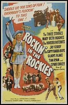 Rockin' in the Rockies is a 1945 musical western full-length movie starring the Three Stooges (not to be confused with their 1940 short subject Rockin' Thru the Rockies).[1] The picture was one of the Stooges' few feature films made during the run of their more well-known series of short subjects for Columbia Pictures, although the group had appeared in supporting roles in other features. It is the only Stooges feature with the team's best known line-up (Moe Howard, Larry Fine, and Curly Howard) in starring roles.