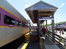 A train parked at the Rockport station platform in July 2016 | |||||||||||
