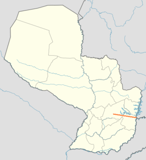 National Route 7 (in Spanish, officially Ruta Nacional Número 7 "José Gaspar Rodríguez de Francia",, or simply Ruta Siete) is an important highway of Paraguay. It links the departmental capitals of Caaguazú and Alto Paraná, Coronel Oviedo and Ciudad del Este, respectively. Crossing a total of 10 districts of both departments. It starts on the roundabout of Coronel Oviedo and ends at the Friendship Bridge, on the Paraná River, traversing 193 km (120 mi).