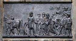 In 1841 count Nostitz erected on the Royal field the monument to Přemysl the Ploughman. The monument was proposed by architect F. Staumann. It is composed of a stone pedestal on the top of which a plough made of cast iron is situated. In the front and the back of the pedestal there are iron reliefs by Josef Max depicting encounter of Přemysl, the Ploughman with the delegation of princess Libuše and his arrival to Vyšehrad. On the left side of the pedestal there is an inscription „ZDE OD PLUHU PŘEMYSL k WÉWODSTWJ POWOLÁN. WZDĚLANY MDCCCXLI.“ ("Here from the plough Přemysl called to rule. Done MDCCCXLI."). In 1945, an inscription was added on the right side of the pedestal: „VLÁDA VRÁTILA SE DO RUKOU TVÝCH, Ó LIDE ČESKÝ. 1945“ ("The rule has returned to your hands, O Czech people. 1945").