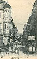 The Rue de la Liberté was named Rue de Condé before the French Revolution. A part of the street, from the Coin du Miroir to the Place d'Armes (now Place de la Libération), was drilled in 1724. Previously, the street included the Rue des Forges and reached the back of the Palais des Ducs.[1] The name "Coin du Miroir" is linked to a hotel in the old Rue Saint-Jean at the corner of the streets Guillaume and Gondrans and which belonged to the Abbaye Notre-Dame du Miroir. This hotel, composed of a square tower which displays on its first floor large ogival openings in the wall, crenellated and surrounded by ditches,[2][3] was demolished in 1767.