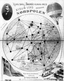 S. A. Andrée's Arctic balloon expedition of 1897 was an effort to reach the North Pole in which all three expedition members perished. S. A. Andrée (1854–97),[1] the first Swedish balloonist, proposed a voyage by hydrogen balloon from Svalbard to either Russia or Canada, which was to pass, with luck, straight over the North Pole on the way. The scheme was received with patriotic enthusiasm in Sweden, a northern nation that had fallen behind in the race for the North Pole.