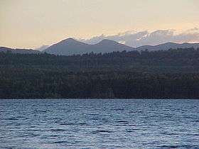 Saddleback Mountain, seen from South Twin Lake, 15 miles (25 km) to the northeast | |