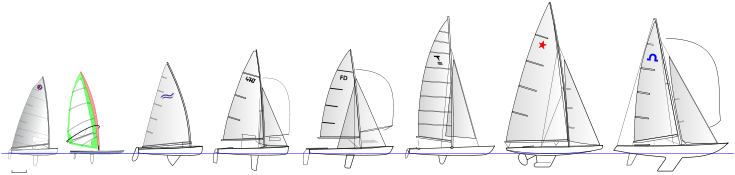 | Class | Type | Event | Sailors | Trapeze | Mainsail | Jibb/Genoa | Spinnaker | First OG | Olympics so far |