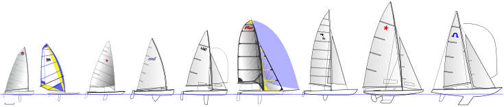| Class | Type | Event | Sailors | Trapeze | Mainsail | Jibb/Genoa | Spinnaker | First OG | Olympics so far |