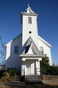 Saint Anthony's Catholic Church is a historic church building at 470 North Wilson Avenue, just north of the crossroads community of Ratcliff, Arkansas. It is a single-story wood frame structure, with a gabled roof and weatherboard siding. A square tower projects from the center of the main facade, capped by a pyramidal roof and cross, with gablets on each side. The main entrance is at the center of the tower, sheltered by a hood with a similar style as the tower roof. The church was built in 1903 under the auspices of the local Subiaco Abbey as a mission serving arriving German Catholic immigrants.[2]