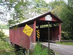 The Sam Eckman Covered Bridge No. 92 is a historic wooden covered bridge located at Greenwood Township and Pine Township in Columbia County, Pennsylvania. It is a 65.1-foot-long (19.8 m), Warren Truss bridge constructed in 1876. It crosses Little Fishing Creek. It is one of 28 historic covered bridges in Columbia and Montour Counties.[2]