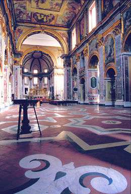 The decoration continued in the 18th century with, among others, Domenico Antonio Vaccaro and Francesco Solimena, who re-used marble elements from the ancient edifice for the new pavement and the pilasters of the nave.
