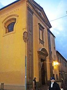 Next to the church is the cloistered monastery founded in 1503 and later enlarged during the life of Caterina deβ Ricci. The atrium leads to the Papalini Madonna Chapel which houses a 16th-century maiolica bust that legend holds caused the Spanish troops of Ferdinand II of Aragon and Pope Julius II to spare the monastery during the 1512 Sack of Prato. The altar has two panels depicting and Assumption and Scenes from the Passion (circa 1576) by Michele delle Colombe; it also houses precious paintings by Simone Pignoni (Saints Catherine and Tecla); Lorenzo Lippi (St Francis di Sales); Ridolfo del Ghirlandaio (Madonna and Child); as well from the studio of Giovanni Battista Naldini. There is an altarpiece by Michele Tosini in the garden of the Chapel of Madonna di Loreto.[2] Some sites in the Convent are closed to visitors.[3]