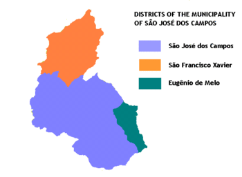The municipality comprises three districts: São José dos Campos — the city itself, (also the seat), Eugênio de Melo and São Francisco Xavier. The last one is known for its natural sites and ecotourism.