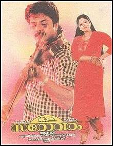 Sarovaram is a 1993 Malayalam-language Indian feature film directed by Jeassy and produced by KM Abraham, starring Mammootty, Jayasudha and Thilakan. The film attracted media attention as Jayasudha acted in a straight Malayalam film after a long time.[1]