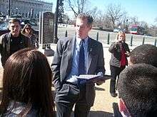 Brown was among the speakers at the Conservative Political Action Conference (CPAC) in Washington, D.C., introducing former Massachusetts governor Mitt Romney.[81] Despite his appearance at CPAC, where he alluded to his election as making "big government spenders...[not] feel good at all", Brown refused to rule out a vote for a Democratic "jobs bill" proposal, and has praised both Senate Majority Leader Harry Reid of Nevada and former senior Senator and current Secretary of State John Kerry of Massachusetts for indicating their willingness to work with him across party lines.[82] Brown was one of five Republican senators to vote for cloture on the jobs bill. The motion passed in the Senate 62–30 on February 22, 2010.[83] In an up or down vote on the bill itself on February 24, 2010, Brown voted for final passage, helping to pass the bill 70–28.[84]