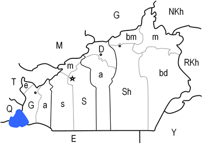 Neighbor Provinces: E: Esfahan, G: Golestan, M: Mazandaran, NKh: North Khorasan, Q: Qom, RKh: Razavi Khorasan, T: Tehran, Y: Yazd
