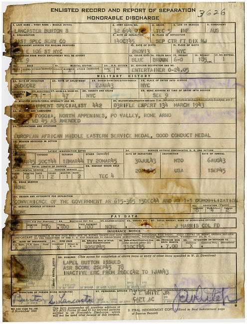 - ↑ Archival reconstruction record of Arthur B. Crean, Military Personnel Records Center, St. Louis, Missouri