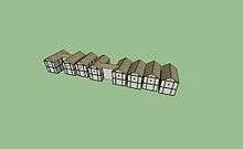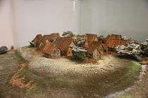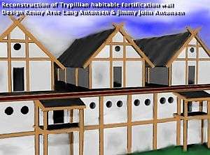 Interconnected Cucuteni-Trypillian houses in the Maydanets settlement. Based on research done in 1996 by the Ukrainian scholar Mikhailo Videĭko.[6]- Interior reconstruction of a Cucuteni-Trypillian house in the Archaeology Museum Piatra Neamț, Romania.