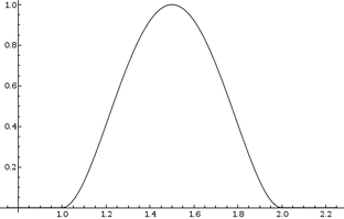 Consider the volume, depicted below, whose cross section on the interval [1, 2] is defined by: