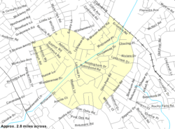 The Sherwood Forest neighborhood of Charlotte, North Carolina was established in the 1950s. In addition to the Sherwood Forest subdivision, the area also includes the Castleton Gardens and Charlestowne Manor subdivisions. The area is bisected by McMullen Creek and is bounded by Sardis Road to the south, Rama Road to the southeast, and by the former Seaboard Air Line Railroad, now CSXT to the northeast, Sharon Amity Road to the north, and Randolph Road to the west. Sherwood Forest is also neighbored by the areas known as East Forest, Stonehaven, Landsdowne, Providence Park, and Cotswold. The area's dominant architectural style is the ranch-style house with brick or wood exterior. In keeping with its namesake, some of the area's street names (such as Nottingham Dr. and Robinhood Rd.) are attributed to characters and places in the Robin Hood stories.
