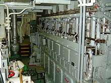 Marine steam engines were the first mechanical engines used in marine propulsion, however they have mostly been replaced by two-stroke or four-stroke diesel engines, outboard motors, and gas turbine engines on faster ships. Nuclear reactors producing steam are used to propel warships and icebreakers. Nuclear reactors to power commercial vessels has not been adopted by the marine industry. Electric motors using electric battery storage have been used for propulsion on submarines and electric boats and have been proposed for energy-efficient propulsion.[1] Development in liquefied natural gas (LNG) fueled engines are gaining recognition for their low emissions and cost advantages. Stirling engines, which are more efficient, quieter, smoother running producing less harmful emissions than diesel engines, propel a number of small submarines. The Stirling engine has yet to be upscaled for larger surface ships.