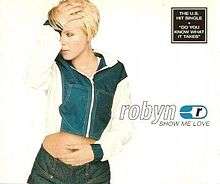 "Show Me Love" is a song by Swedish singer and songwriter Robyn. It was released in October 1997 as a single from her debut studio album, Robyn Is Here. The song is her fourth Swedish, third UK and second US single. The song is sometimes confused with Robin S.'s 1993 hit "Show Me Love" because of identical song titles and similar first names; however, the two songs are not related.