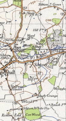 Sibton is a village and civil parish on the A1120 road, in the Suffolk Coastal District, in the English county of Suffolk. It is near the towns of Saxmundham and Halesworth, the village of Peasenhall and the hamlet of Sibton Green. The church is dedicated to St Peter; there is also an abbey, Sibton Abbey. There is a large stately house set in the grounds of Sibton Park which dates back 1827 in the Georgian period,[1] which is now used as a hotel. The estate consists of 4500 acres,[2] being part of the Wilderness Reserve where there are holiday cottages and a lake. The Parish is also in close proximity to the River Yox which runs past the White Horse Inn and down through Pouy Street, it then goes on past both the A1120 road and a small wooded area called Abbey Woods to pass through the grounds of Sibton Park and then on to Yoxford.