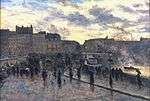 He made frequent trips for inspiration, visiting England, Scandinavia, Switzerland, North Africa and North America.[2] His favorite subjects were landscapes, city and harbor views, often populated with figures. Le Havre was one of his favorite locations. He also made some etchings and lithographs.
