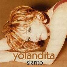 Siento is the 24th Studio album by Puerto Rican singer Yolandita Monge. It was released in 1999. This album returned the singer to her usual strong melodramatic ballads along with producer Ricardo Eddy Martínez, one of the producers of Vivencias. It includes the radio hit "Dime", as well as the dance single "Mala Sangre". The album earned Gold status and is currently out of print in all media formats. The sales exceed 50.000 copies.